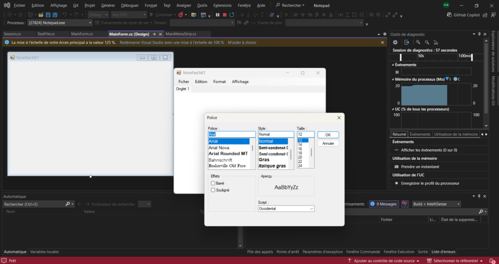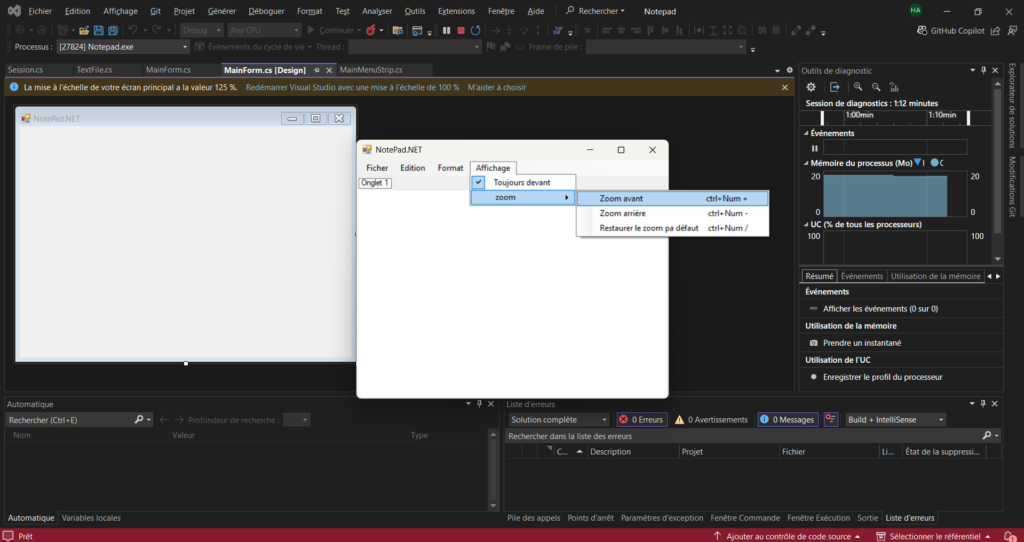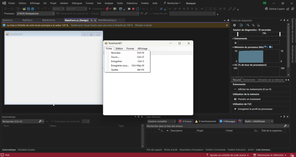 J’ai créé un bloc-notes en C# en suivant un tutoriel sur YouTube (Créer une application Windows Forms C# de A à Z – 01 – Création du projet).