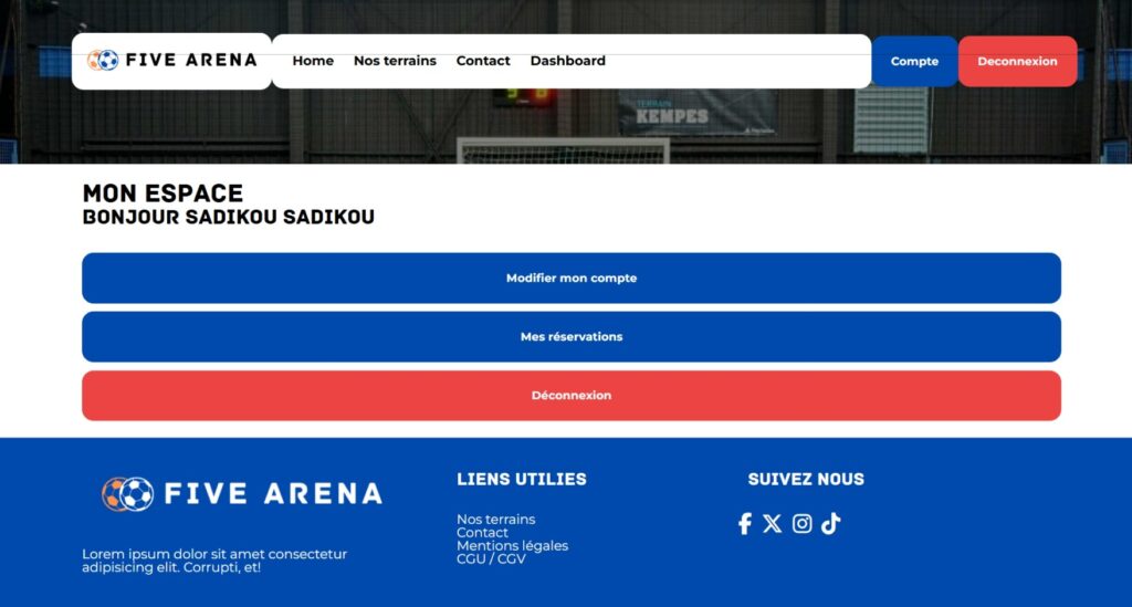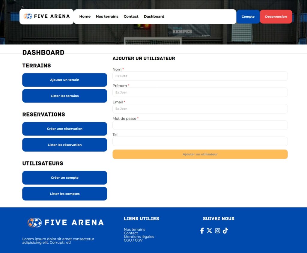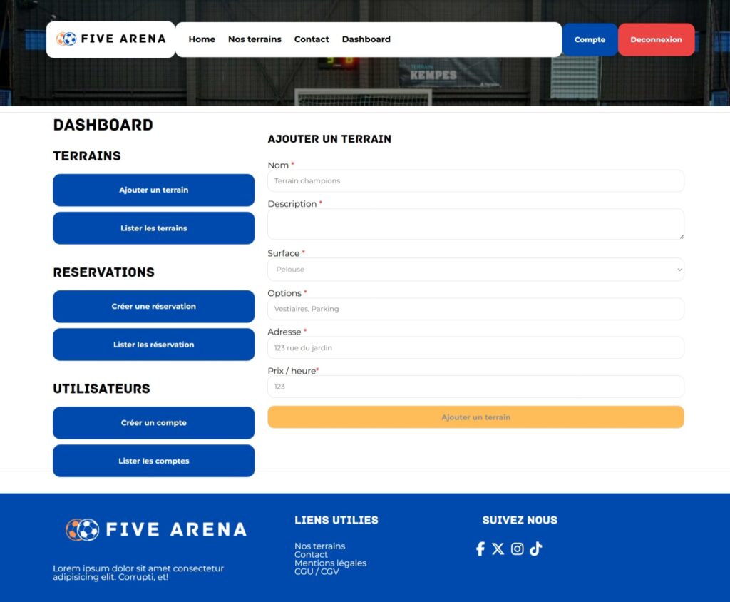 Quant à l’administrateur il peut gérer les terrains, les réservations et les utilisateurs